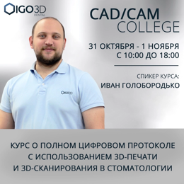 КУРС CAD/CAM COLLEGE "Цифровая стоматология в ортодонтии и ортопедии с применением 3D-печати" совместно с Евгением рощиным
